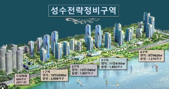 | 4구역 | 성수동1가 661-699번지 일대 | 약 9.3만㎡ | 조합 설립인가 완료, 일부 사업시행인가 신청 |