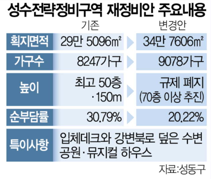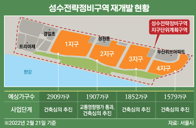 - 한강변이지만, 성수전략정비구역은 일부 고도 제한 완화 논의 중